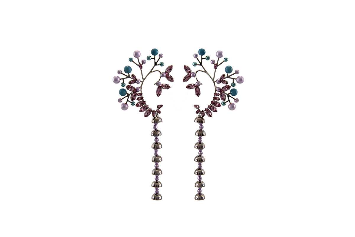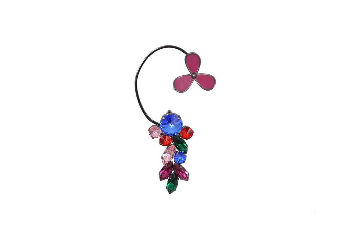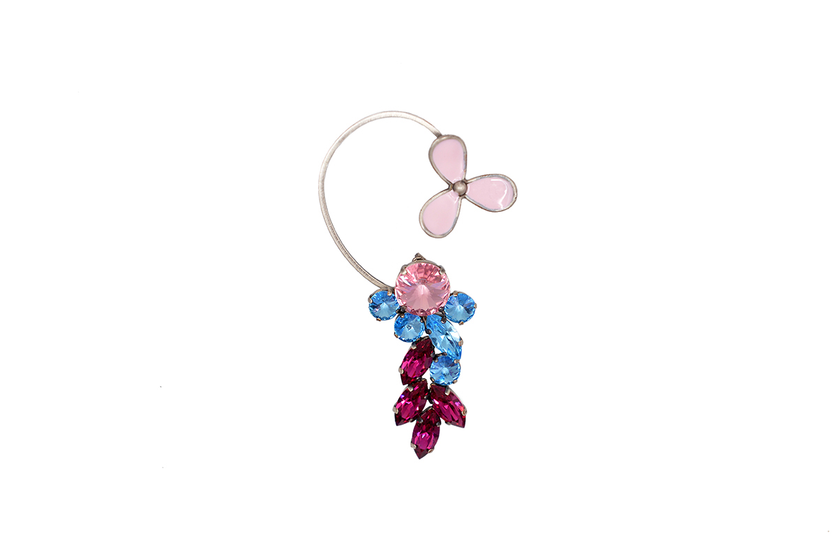 Pink, blue and green crystals; rose and grey resin accents